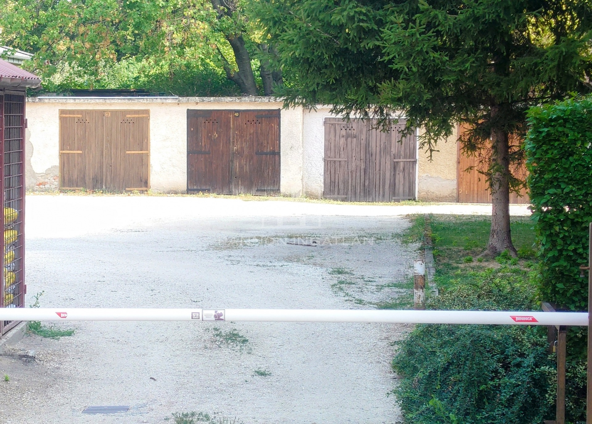 A lakóház udvara távirányítós sorompóval lezárt, biztonságos parkolási lehetőséget biztosít.