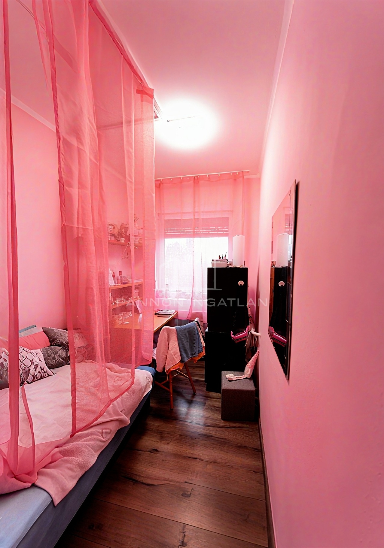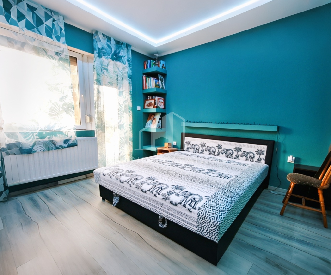 Képzeld el egy csendes zsákutca/köz hangulatát: ez a 82 m²-es sorház 2012-2018 között kapott teljes körű felújítást modern megoldásokkal, praktikus elrendezéssel.