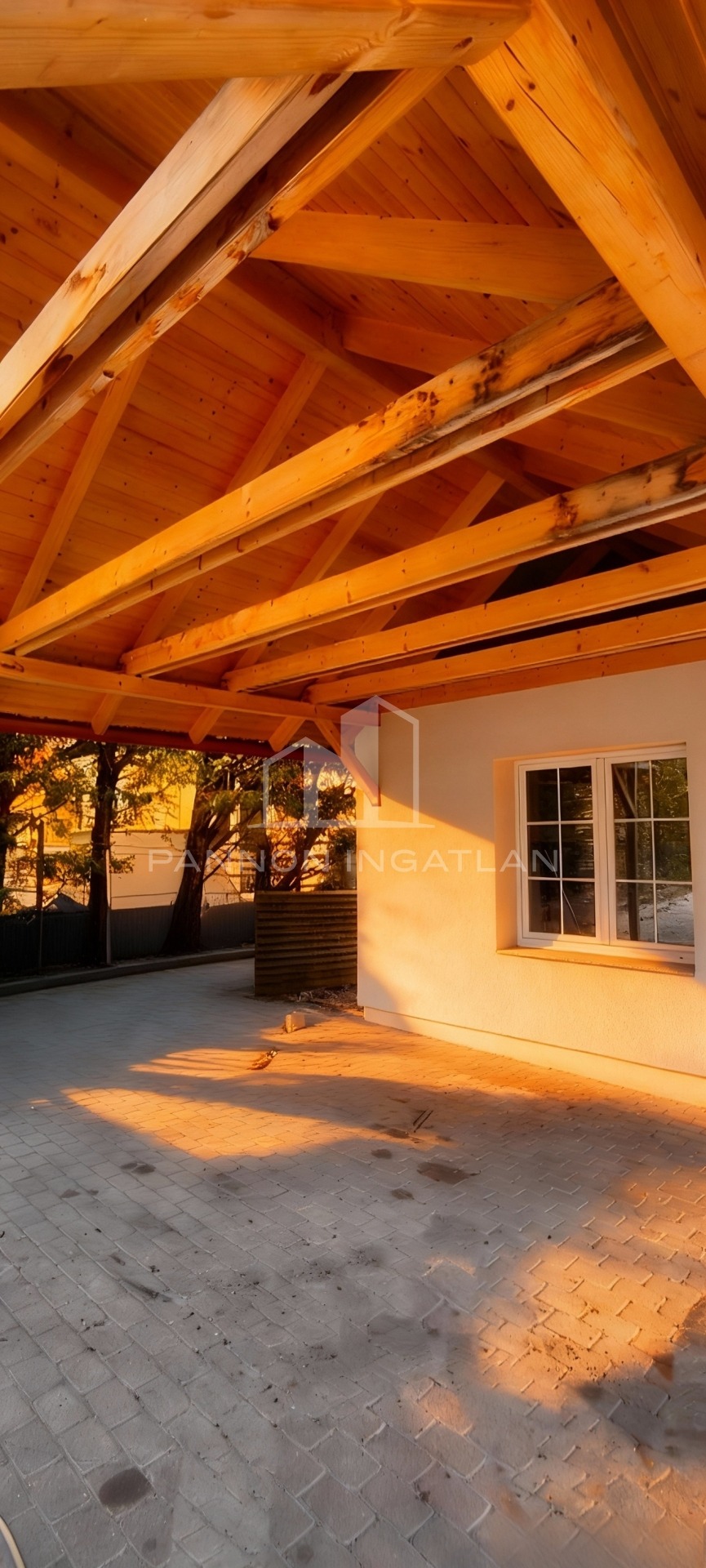 A konyha előtt 24 m2-es fedett terasz található.