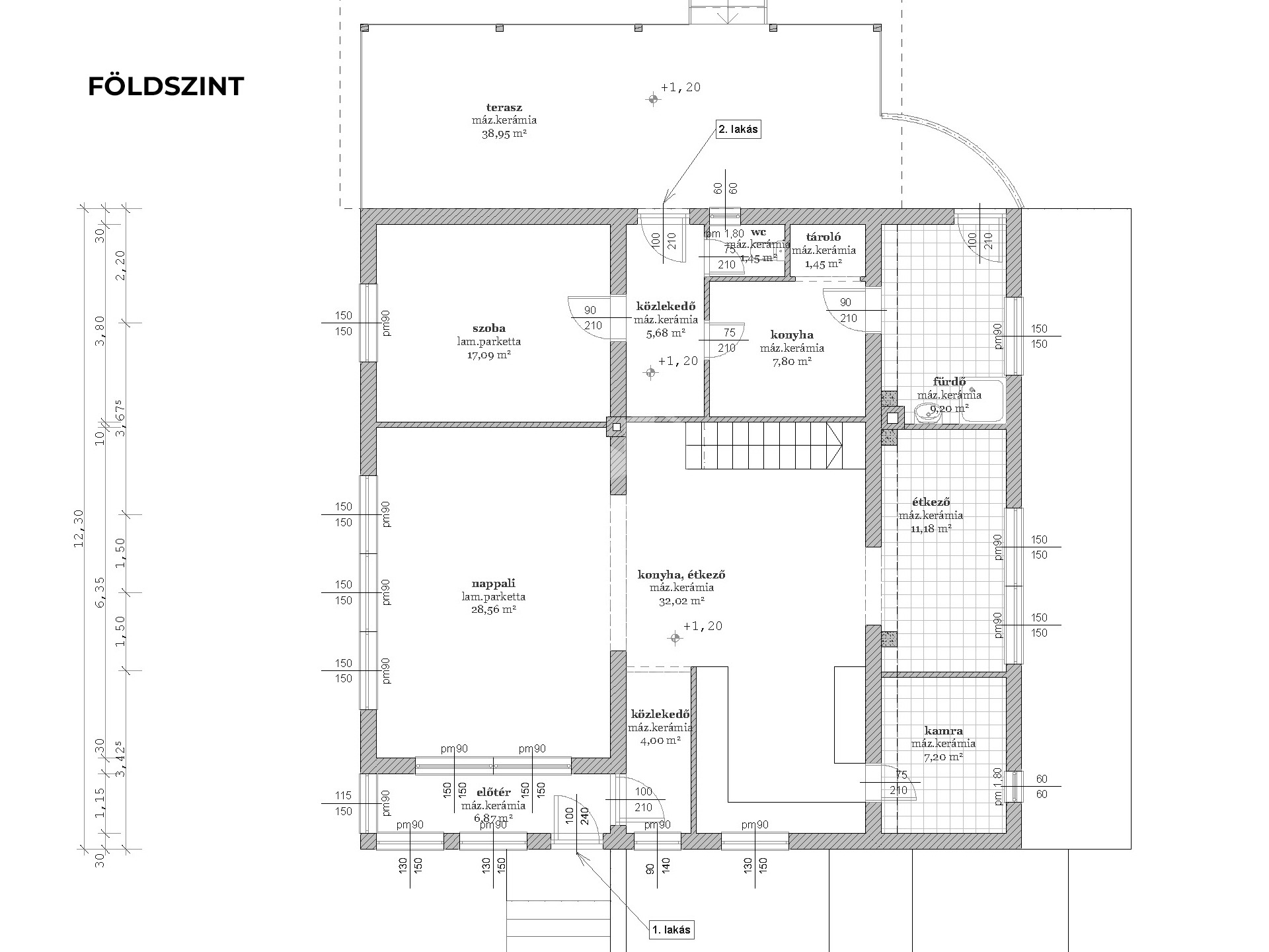 Földszint – 158 m² + 52,8 m² terasz