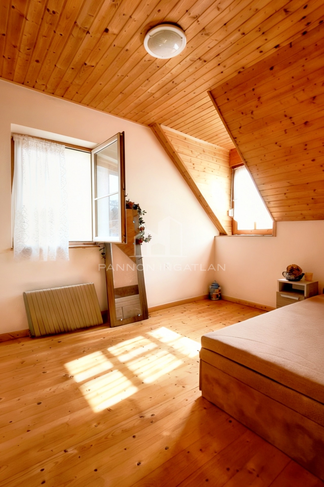A lakószinten van egy lakókonyha, fürdőszoba és 1 hálószoba, az emeleten 2 hálószoba és szintén egy zuhanyozós fürdőszoba.