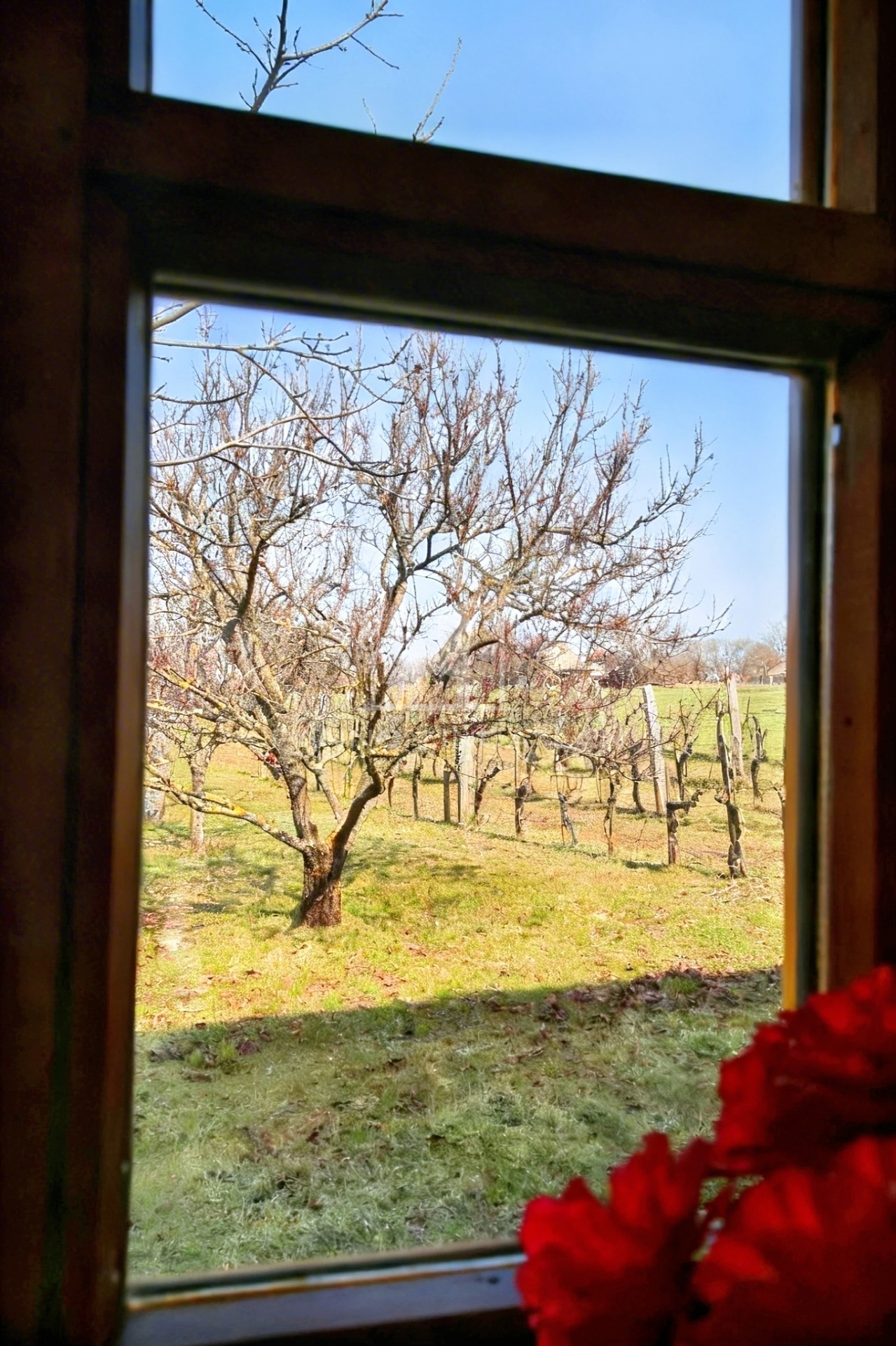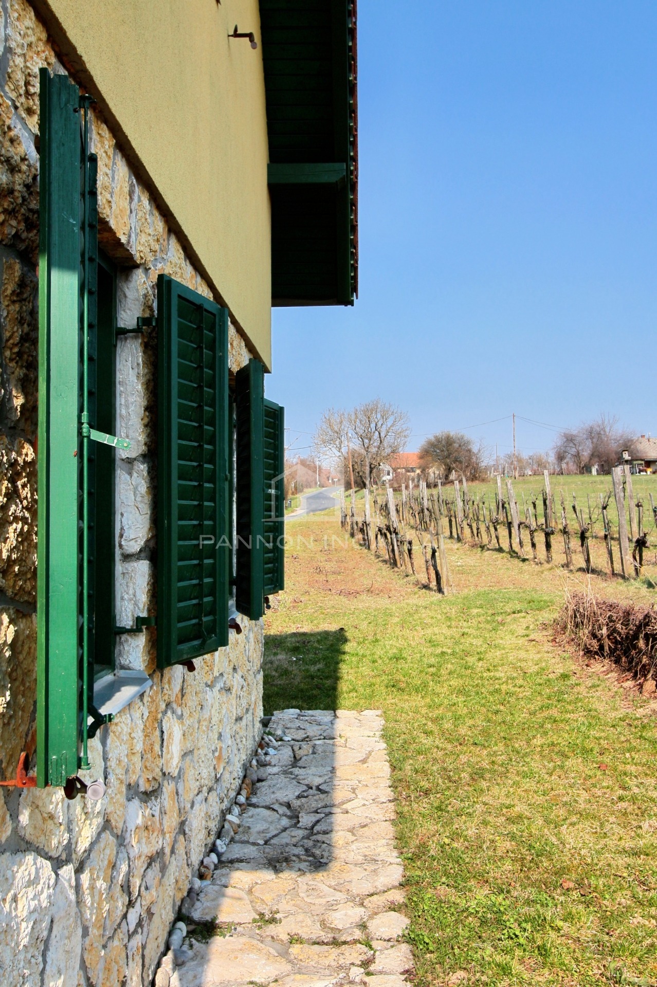 Gyümölcsfák és 4 sor szépen gondozott szőlő adja meg a tulajdonosoknak tavasztól őszig a vitaminforrást, de lehetőség van veteményes létrehozására is.
