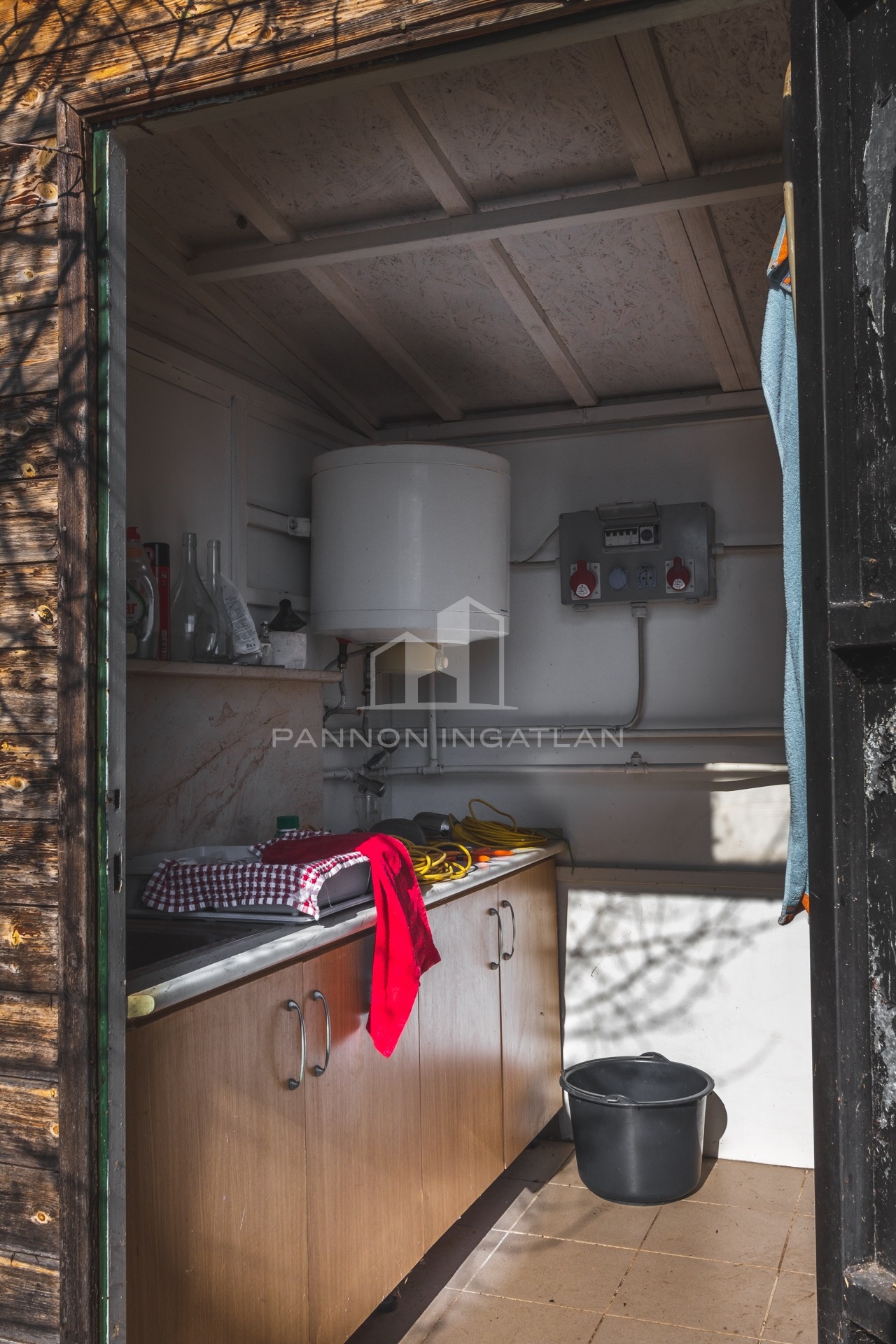 A ház mellett épült egy fürdőépület, melyben mosókonyha, különálló ZUHANYZÓ és tőle elszeparált WC-fülke kapott helyet.