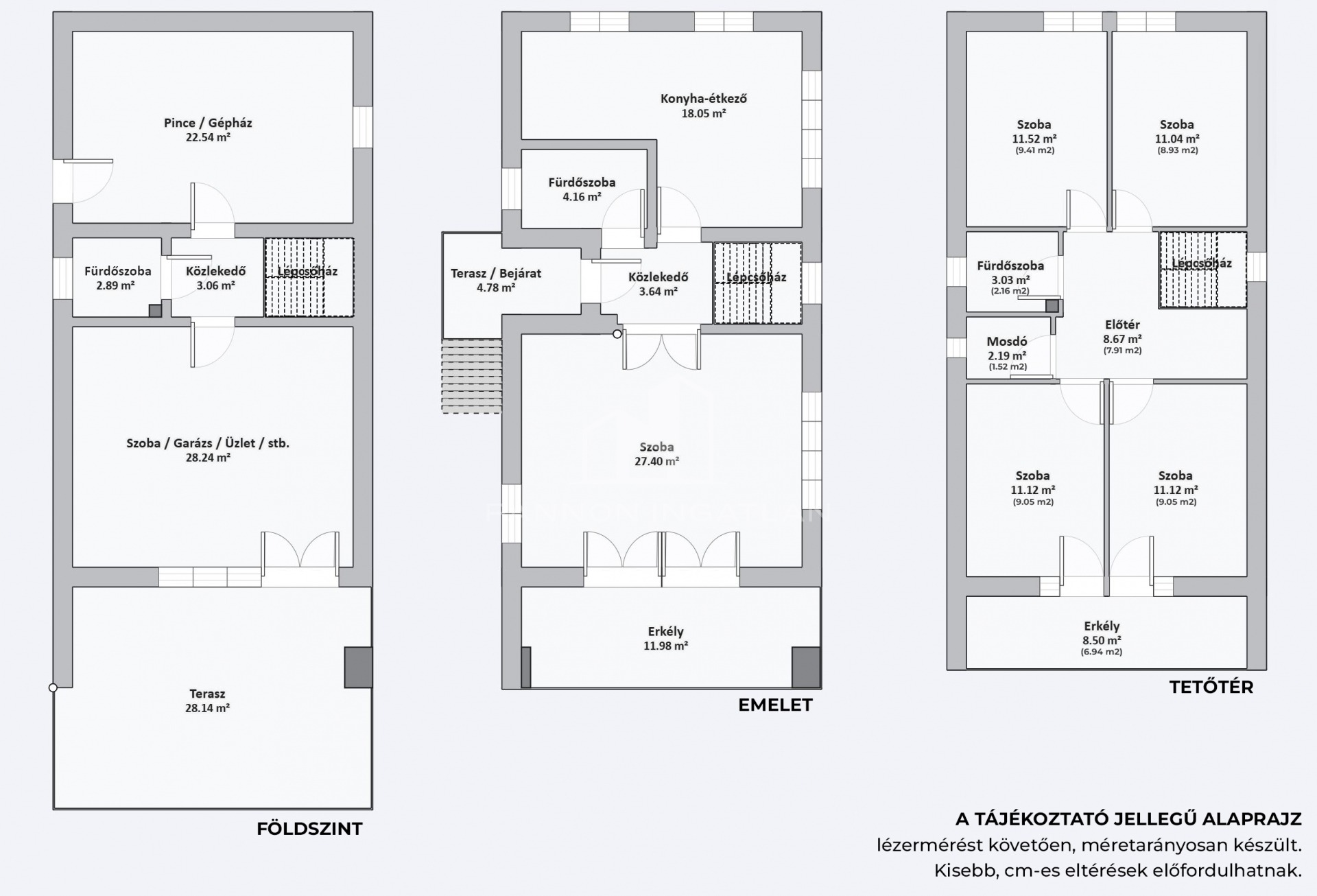 - Tetőtér: 4 szoba, fürdőszoba, előtér