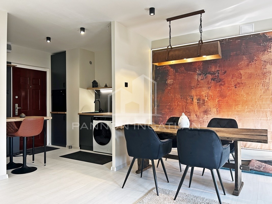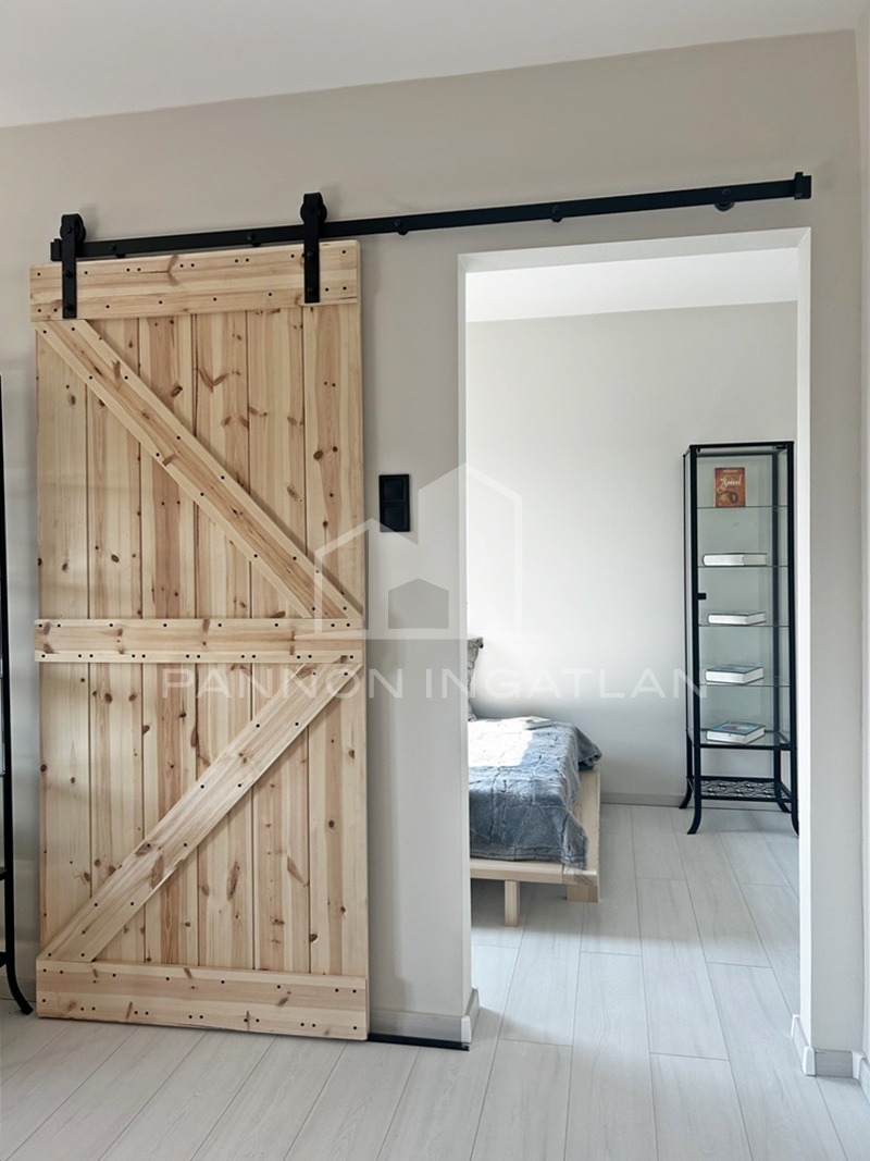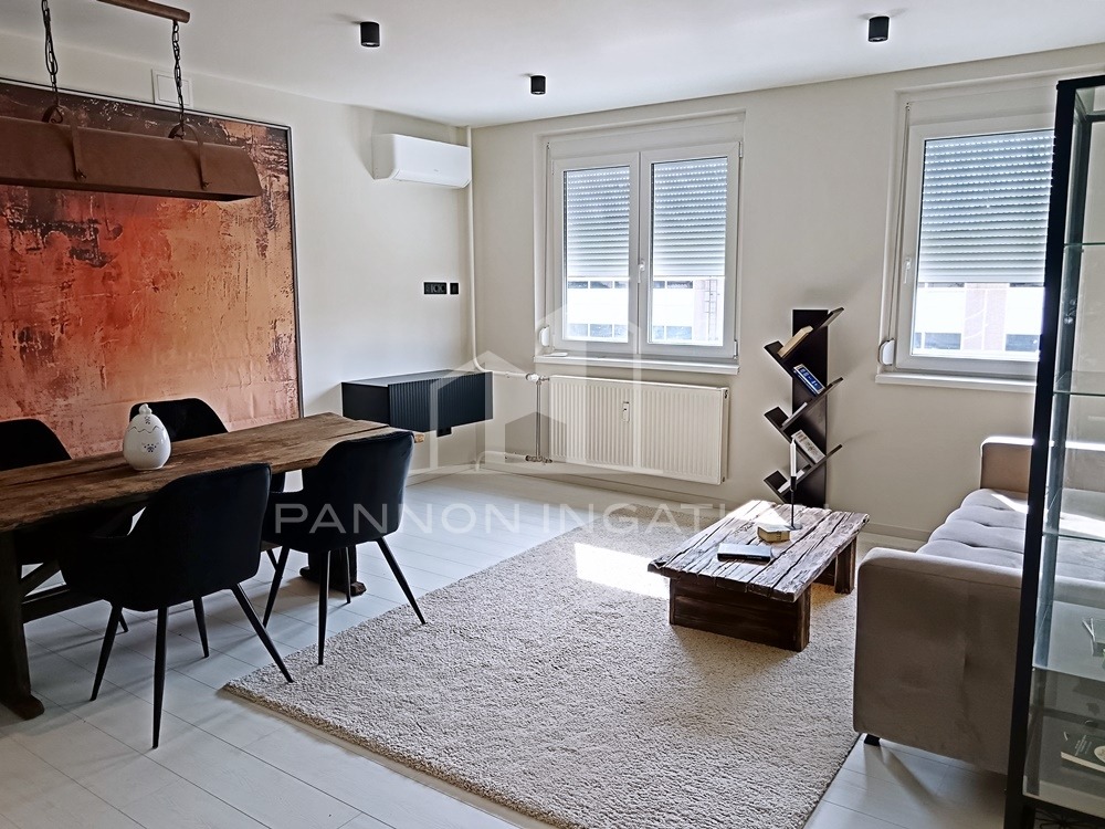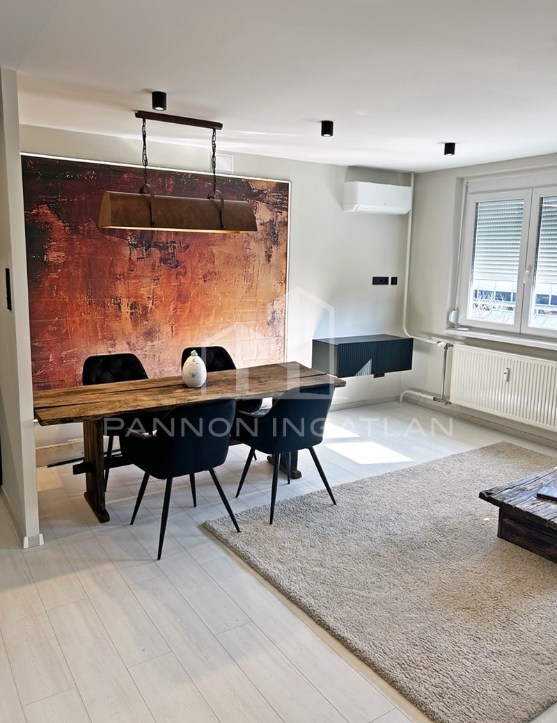 A belső tér modern, letisztult és otthonos. A nappaliban kialakított rusztikus wabi-sabi hangulatú étkezőrész különleges karaktert ad a lakásnak, miközben az átgondolt térszervezés kényelmes mindennapi használatot biztosít.