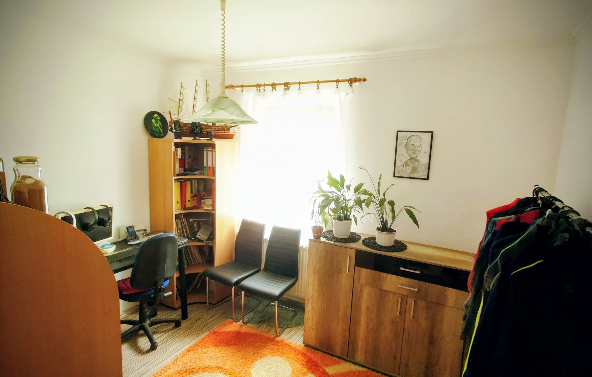 Veszprém csendes városrészében eladó földszinti lakás– 5 szoba, amerikai konyhával, garázzsal, udvarral.